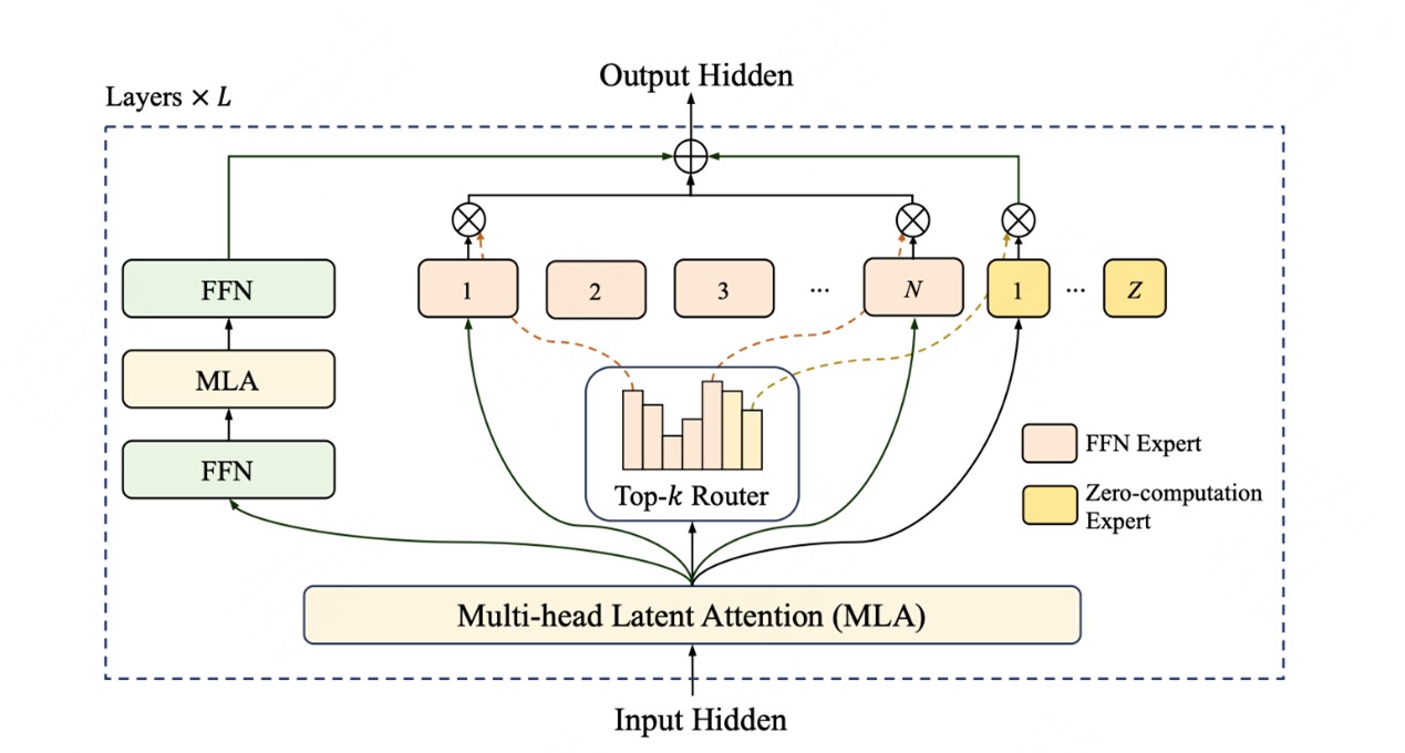 美团AI进展频传,LongCat-Flash-Chat具有较着更快的推理速度,LongCat-Flash还对常用大模子组件和锻炼体例进行了改良,将单token平均激活量不变正在约27B。LongCat-Flash-Chat正在仅激活少量参数的前提下,LongCat-Flash模子正在架构层面引入“零计较专家(Zero-ComputationExperts)”机制,使MoE的通信和计较能很大程度上并行,据悉,