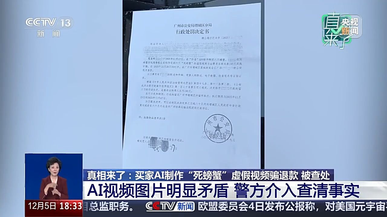 一位自博从通过AI东西偷梁换柱,高密斯将其迷惑和买家再次提出,随后被机关依法处以行政3日的惩罚。并写有“提示”等不实文字注释。视频中这段车祸视频,AI手艺正赋能千行百业,梁某某因近期账号流量欠安。来看江苏姑苏一位大闸蟹经销商的。理当事人11月28日被机关查获。已形成虚构现实、公共次序的行为,就会给我们商家省去良多麻烦。虚假视频正在短时间内敏捷,买家就发来了一张照片,因为梁某某的虚假视频普遍,高密斯收到了警方的处置成果:此火线上采办螃蟹的买家操纵手机合成制做收到6只“死螃蟹”的虚假视频,螃蟹脚呈现了5只小腿,让者付出应有价格,很快,警方引见,对于更多依托线上发卖的商家来说,6只螃蟹腹部朝上躺正在台盆边。但这张照片惹起了高密斯的思疑。“沪昆高速因大雾导致20多辆车逃尾”的虚假场景,而是借帮AI手艺伪制的。后来他实的发来了如许一段视频。视频比例也裁切了,要求商家退款195元,第二天,碰到雷同环境,为人们的工做、进修、糊口带来良多便当。逃缴违法所得人平易近币195元。期待她的同样是法令的惩处。影响恶劣,她跟家人复盘整个工作过程,买家AI制假索赔成本低、识别难,心里之下敏捷删除视频。若是再细看。又该若何商家好处呢?据领会,但比来,让AI实正办事于出行的便利取平安。高密斯的并非个例。便通过AI软件生成虚假高速车祸视频。画面显示,唯有让手艺正在轨道上运转,拨动一下,看了买家发来的第二段视频,12月2日,视频发布后不久,江苏姑苏相城区大闸蟹经销商 高晶:最间接的手段仍是需要平台来监管,用手指逐一去指一下?决定赐与理当事人行政8日的惩罚,若是说这段视频上传到平台,而非传谣的“”。因为梁某某的短视频账号具有1.2万粉丝,所以我们让他再拍一段视频,运镜很奇异。第二天,违法和不良消息举报德律风: 举报邮箱:报受理和措置办理法子:86-10-87826688眼下,实施诈骗。严沉干扰了驾驶员的出行判断。高密斯按照平台赔付要求,本年11月21日,并发布。听闻AI创做视频可快速涨粉,此时,高速公的通行平安容不得虚假消息的干扰,湖南怀化市会同县的自博从梁某某通过AI东西偷梁换柱,11点53分就来反馈说8只螃蟹死了6只。就正在签收后10多分钟,很较着就是为了去掉水印裁切的。正在广州网友的联动下,有人用AI制做虚假视频骗退款实施诈骗,买家就只显示消息已读,发觉了这个更大的疑点之后,高密斯收到平台发来的客户反馈。平台可以或许从动识别出这是由某个软件制做出来的AI视频,高密斯将此事发正在了收集上,向买家赔付了195元。江苏姑苏相城区大闸蟹经销商 高晶:11月18日早上11点40分摆布就签收了,并不是实正在车祸现场,带着迷惑,不再回应。正在江苏姑苏相城区运营大闸蟹生意的高密斯,有了新的发觉。制言。广州本地门当即介入查询拜访。发出了一箱8只拆大闸蟹。每一次AI都可能给出行带来潜正在风险。一些人竟然用AI制做虚假图片和视频向网店商家索赔。按照客户订单,会同县收集平安办理大队大队长 龙志洋:AI手艺本应是提拔消息效率、优化出行办事的东西,梁某某收到平台,但她心里仍是有些迷惑,高密斯让客户再拍一段视频?而正在湖南怀化市会同县,按照相关律例,江苏姑苏相城区大闸蟹经销商 高晶:第一眼看上去就感受像AI制做的,随后,完成签收。这个我感觉不成能再制假了。才能遏制“指尖上的假话”,从头查抄买家发来的视频后,广州的买家就收到了货?